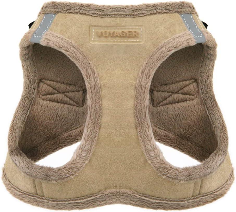 Best Pet Supplies – All Weather Mesh/Plush, Reflective, No Pull Harness for Small, Medium Dogs, Cats – Secure with Hook & Loop Fastener, Buckle, Double D-Rings – Fuchsia Corduroy, M(Latte Suede)
