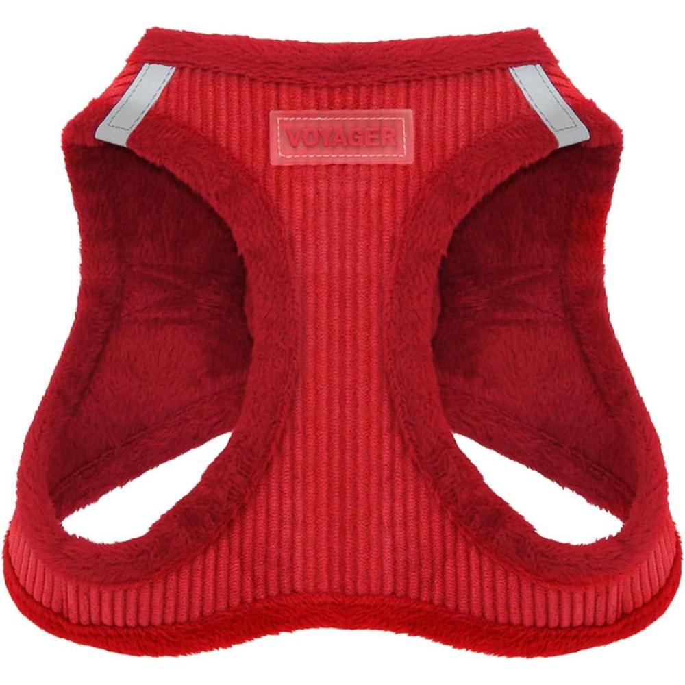 Best Pet Supplies – All Weather Mesh/Plush, Reflective, No Pull Harness for Small, Medium Dogs, Cats – Secure with Hook & Loop Fastener, Buckle, Double D-Rings – Fuchsia Corduroy, M(Red Corduroy)