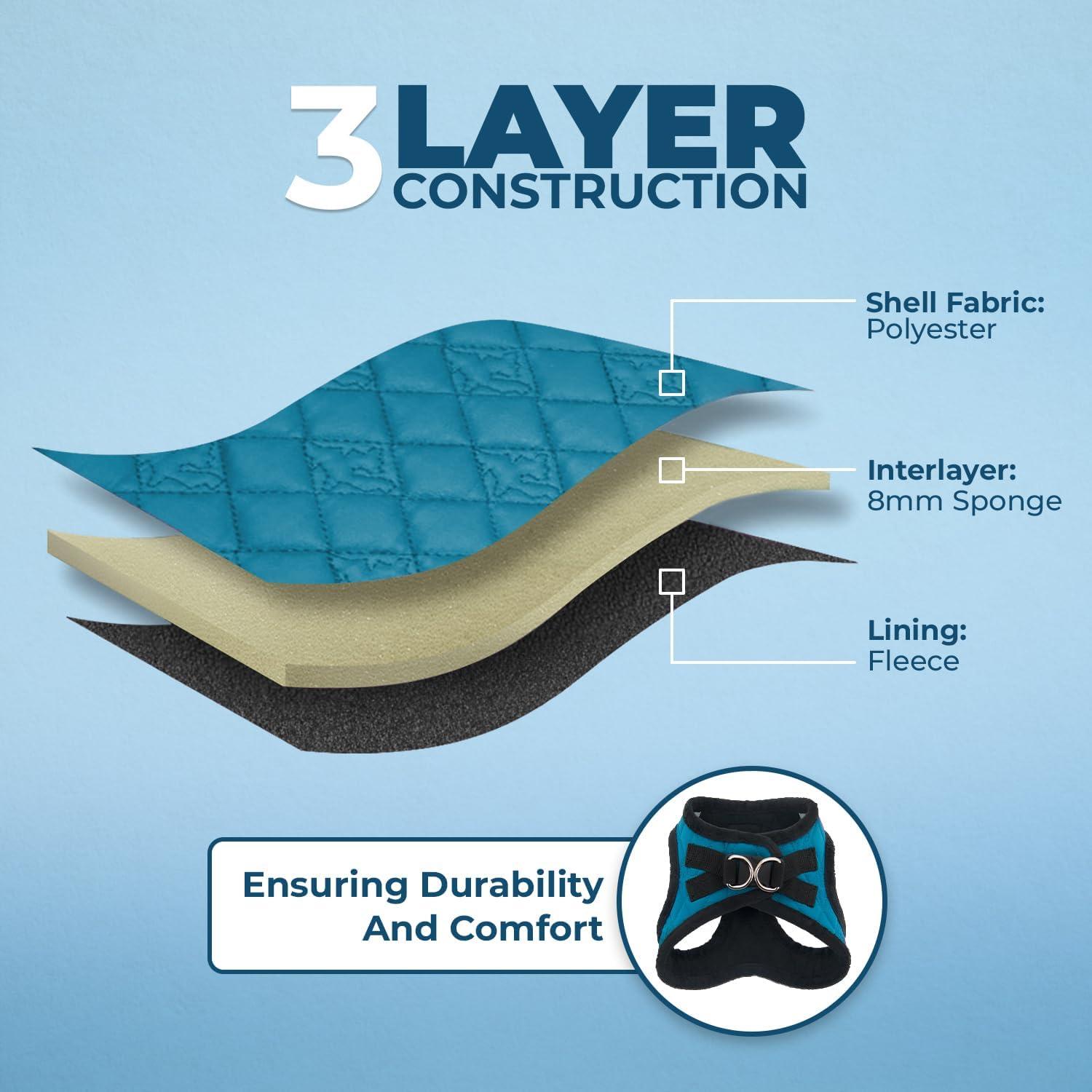 SOFT & WARM PLUSH: Lined with a soft and warm plush fabric, this harness will keep your pet comfortable during walks on brisk days.