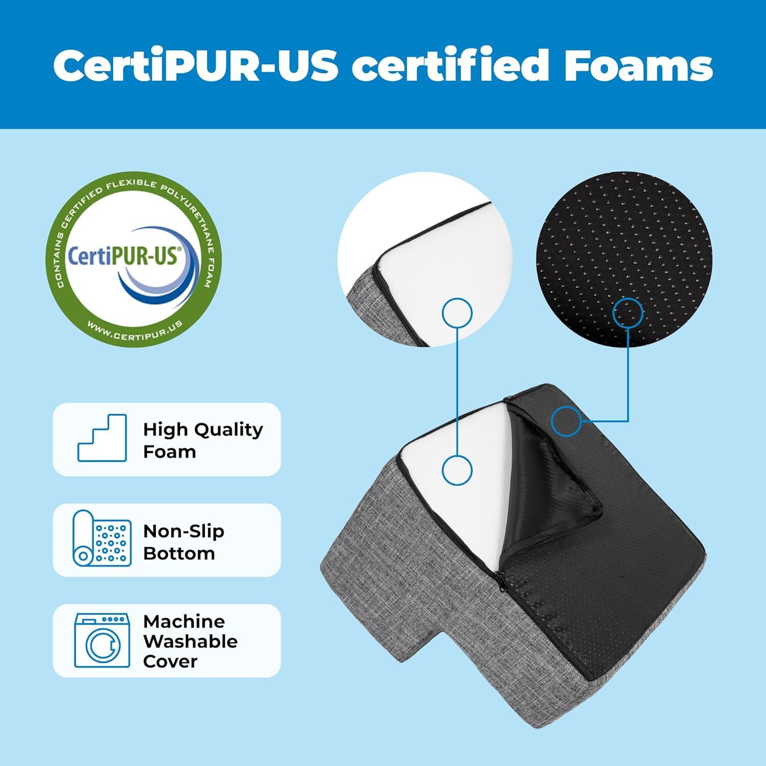 PET-SAFE MATERIAL: Constructed with CertiPUR-US Certified Foam, these non-slip dog stairs for small and medium dogs provide safety for pets while being free from ozone depleters, PBDE flame retardants, mercury, and lead