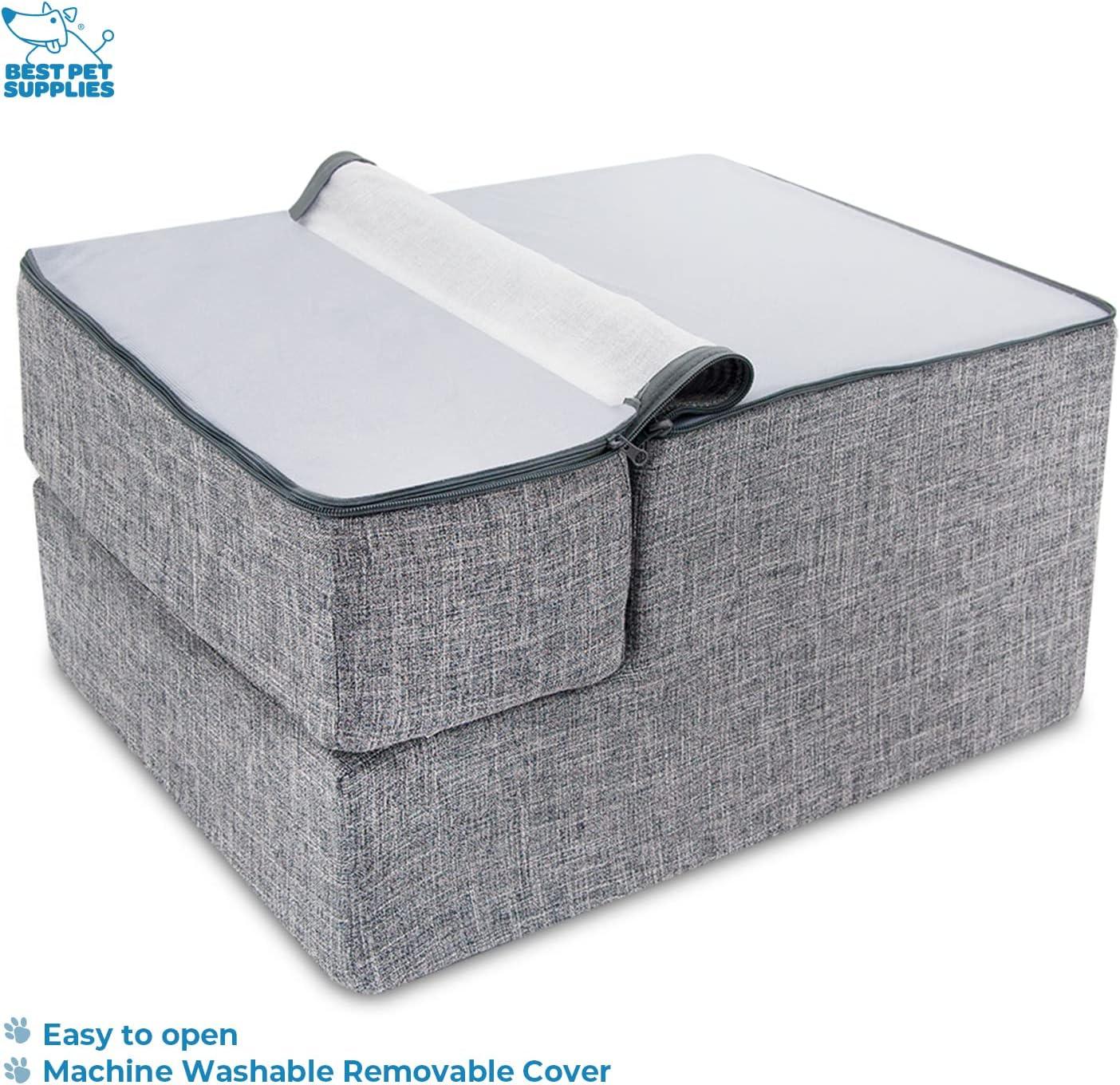 Best Pet Supplies Dog Stairs & Steps – Foam Steps for Small Dogs & Cats, Non-Slip Indoor Balanced Pet Step Support, Dog Ramp, No Assembly, Ash Gray Linen, 2-Step (12-inch Height)(Ash Gray Linen)