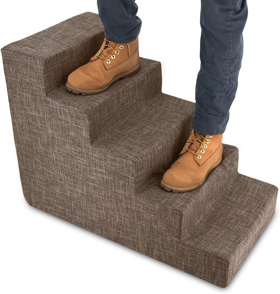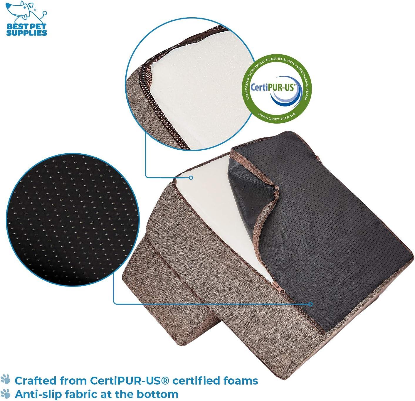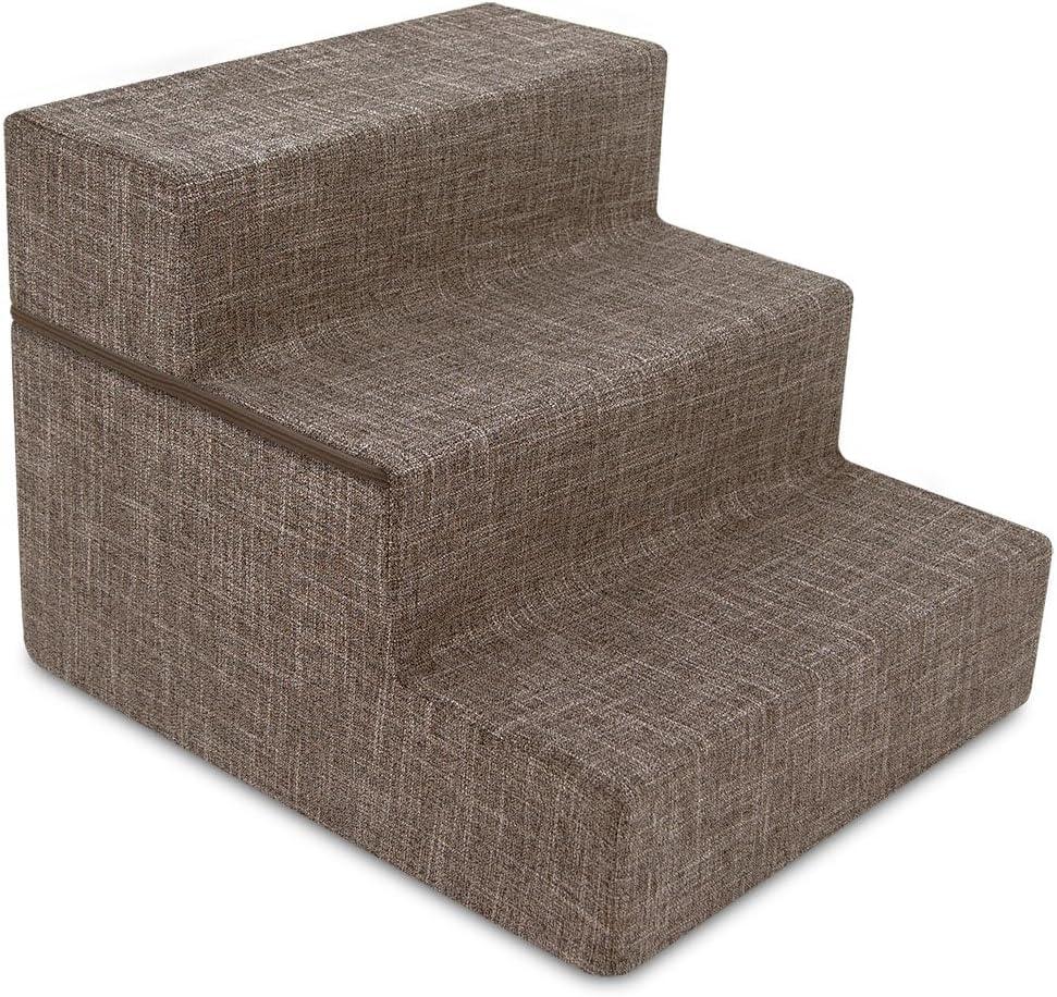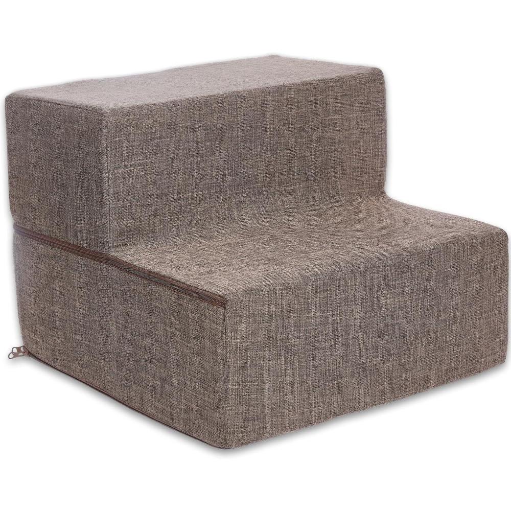 Best Pet Supplies Dog Stairs & Steps – Foam Steps for Small Dogs & Cats, Non-Slip Indoor Balanced Pet Step Support, Dog Ramp, No Assembly, Ash Gray Linen, 2-Step (12-inch Height)(Brown Linen)