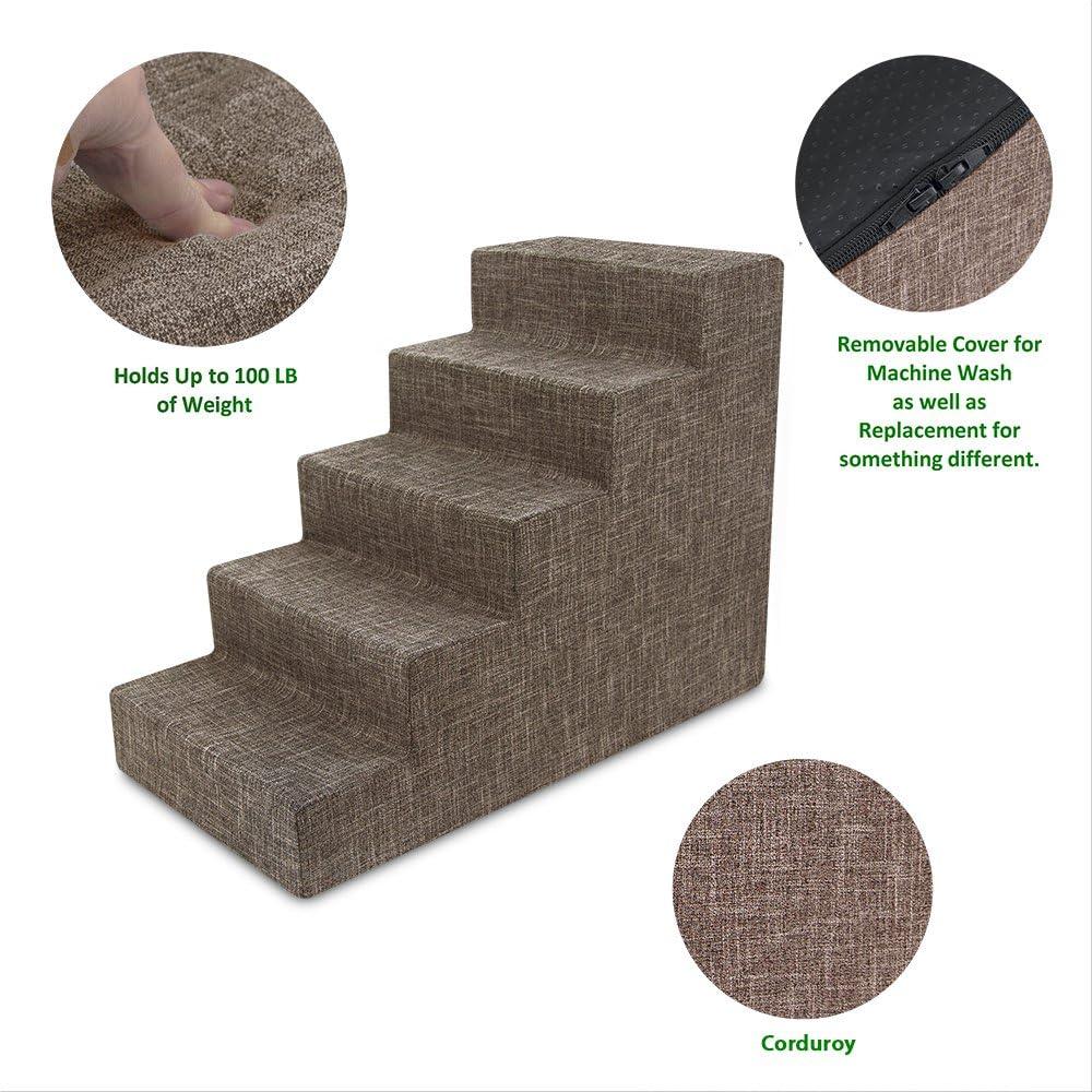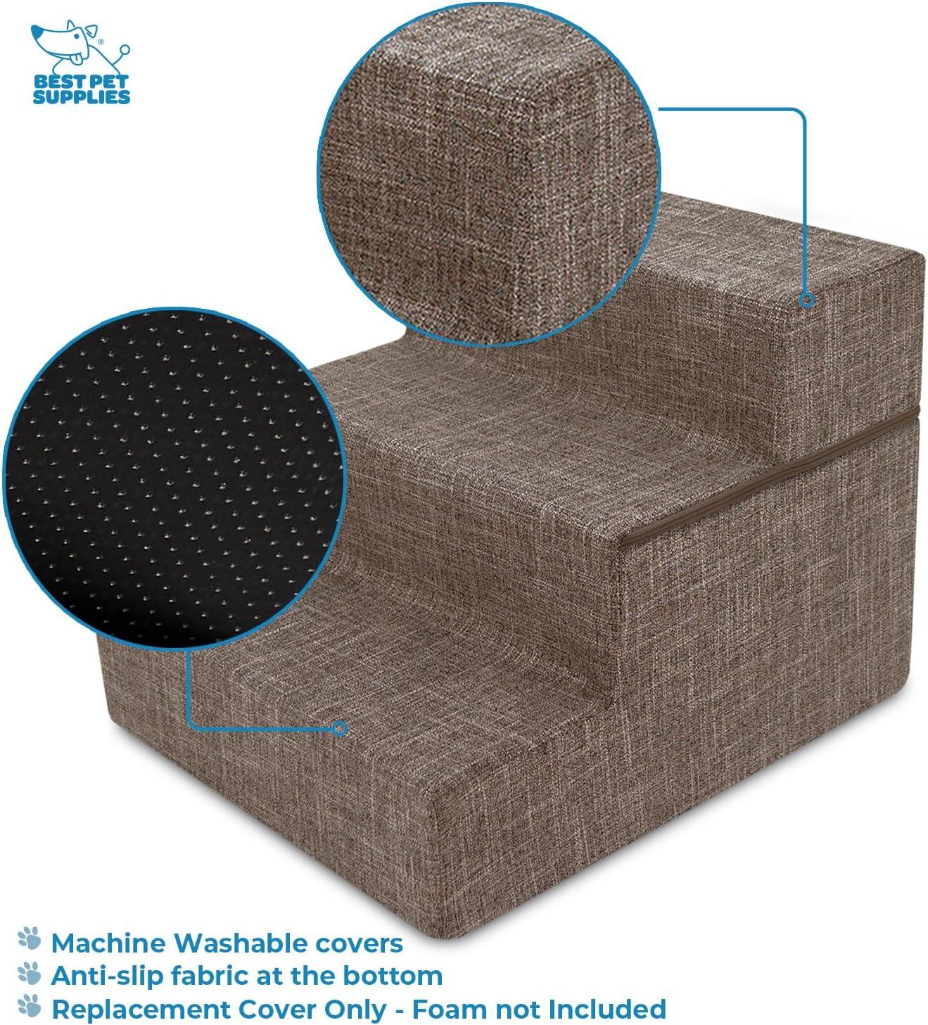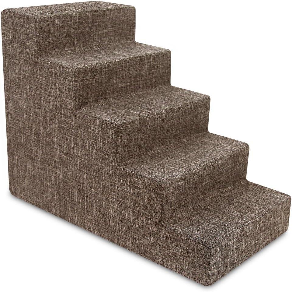 Best Pet Supplies Dog Stairs & Steps – Foam Steps for Small Dogs & Cats, Non-Slip Indoor Balanced Pet Step Support, Dog Ramp, No Assembly, Ash Gray Linen, 2-Step (12-inch Height)(Brown Linen)