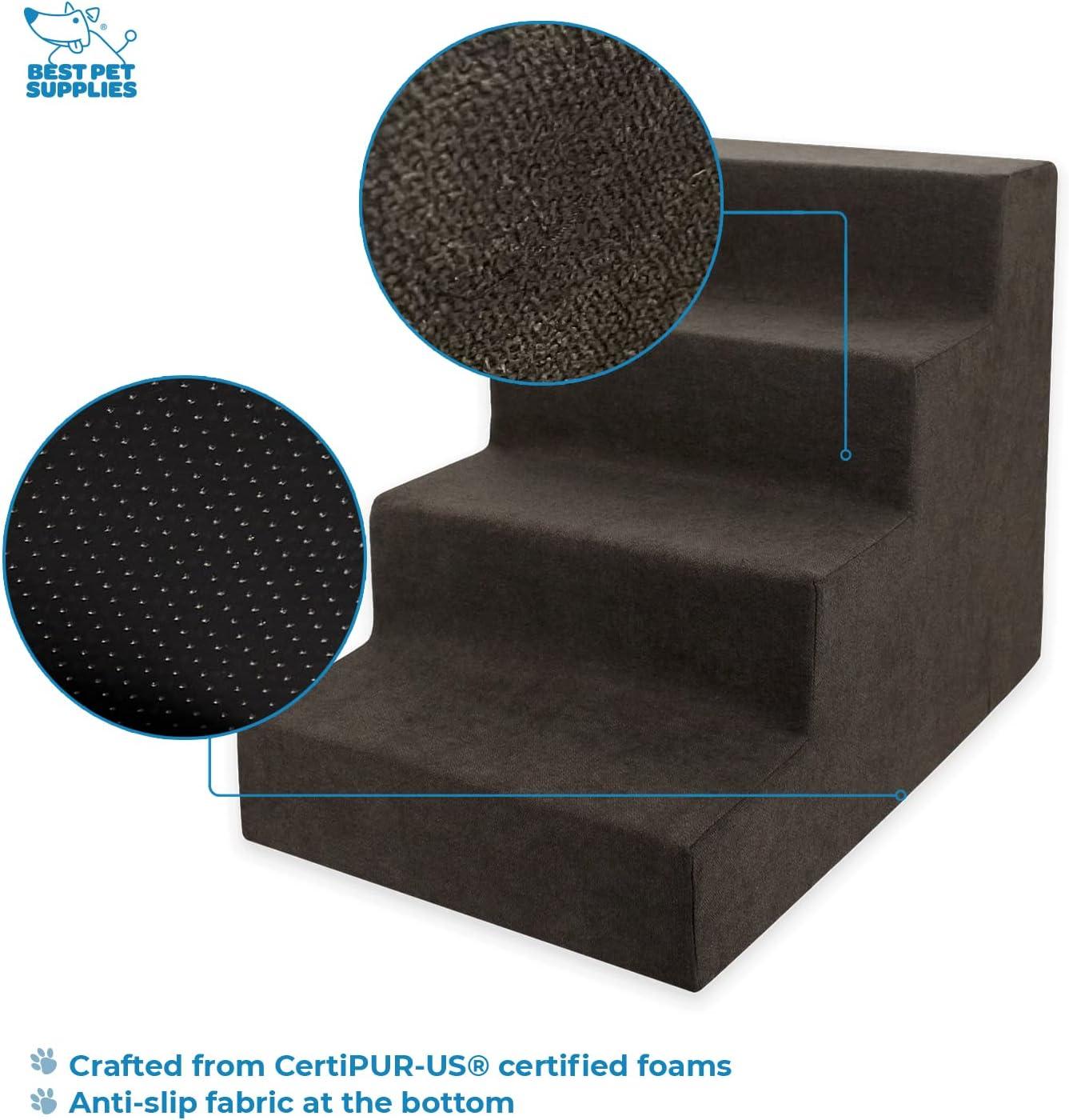 PET-SAFE MATERIAL: Constructed with CertiPUR-US Certified Foam, these non-slip dog stairs for small and medium dogs provide safety for pets while being free from ozone depleters, PBDE flame retardants, mercury, and lead