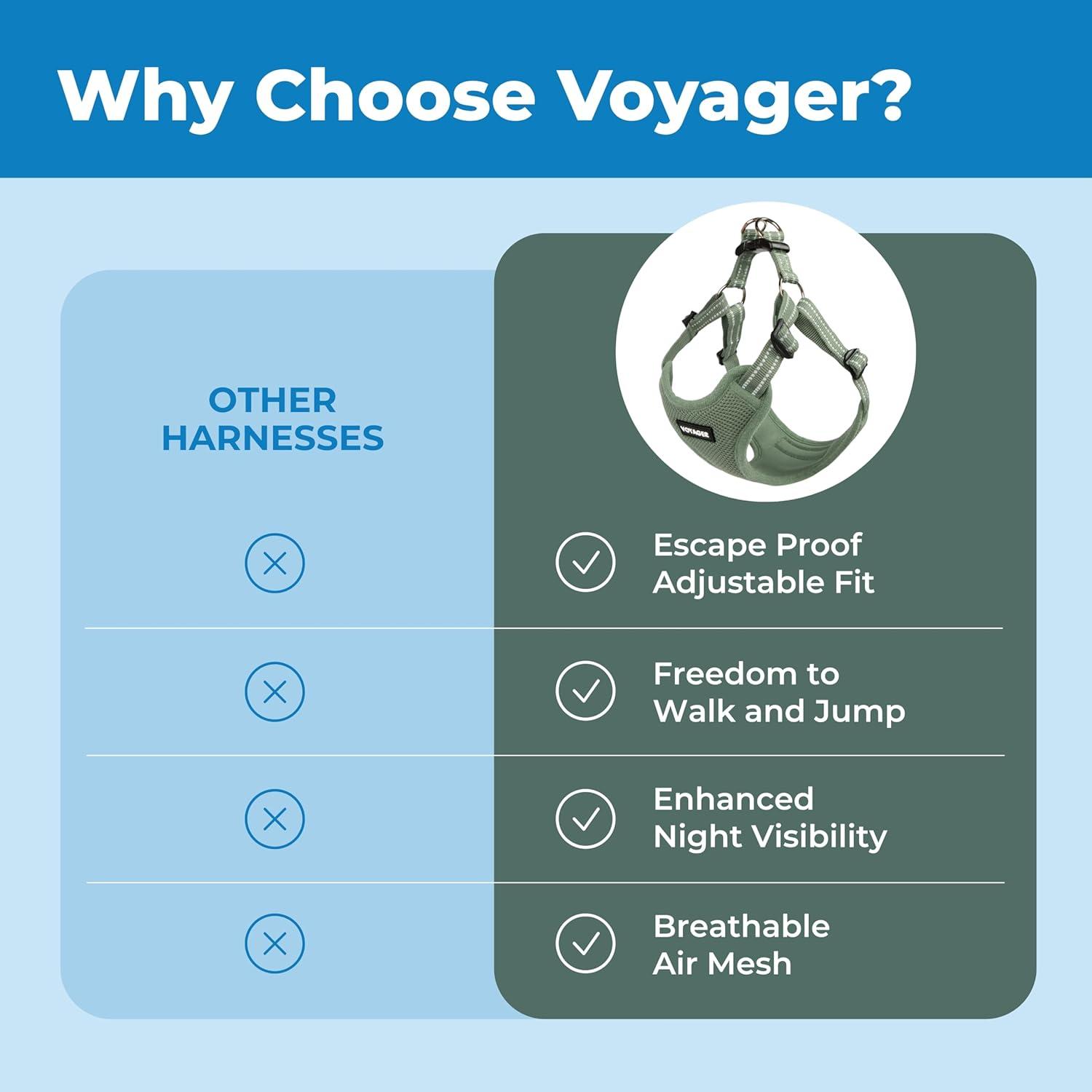 The Voyager Dog Harness is crafted with care to cater to modern, active dogs. This dog harness provides comfort with its multi-layered design featuring breathable mesh, double-stretch yarn, and soft velvet. Ideal for running, hiking, and daily strolls, this harness prioritizes coolness and breathability with its high-elasticity air mesh fabric to keep your furry friend fresh and active throughout your adventures. Designed for durability, the heavy duty vest offers long-lasting performance with high-tensile strength that withstands regular wear and tear, making it the ideal no pull dog harness. Our dog walking harness is also crafted for convenience with easy-clean, quick-dry fabric, allowing you to enjoy outdoor excursions without worrying about mud and dirt. Available in sizes that range from an extra small dog harness to an extra large dog harness, and offered in vibrant colors, you're sure to find the best fit and style for your pet. Adjustable straps provide a snug and comfortable fit, making it a reliable partner for training and daily use. Let your adventures be limitless with this easy-to-use dog training harness, designed to meet the needs of both you and your pet.