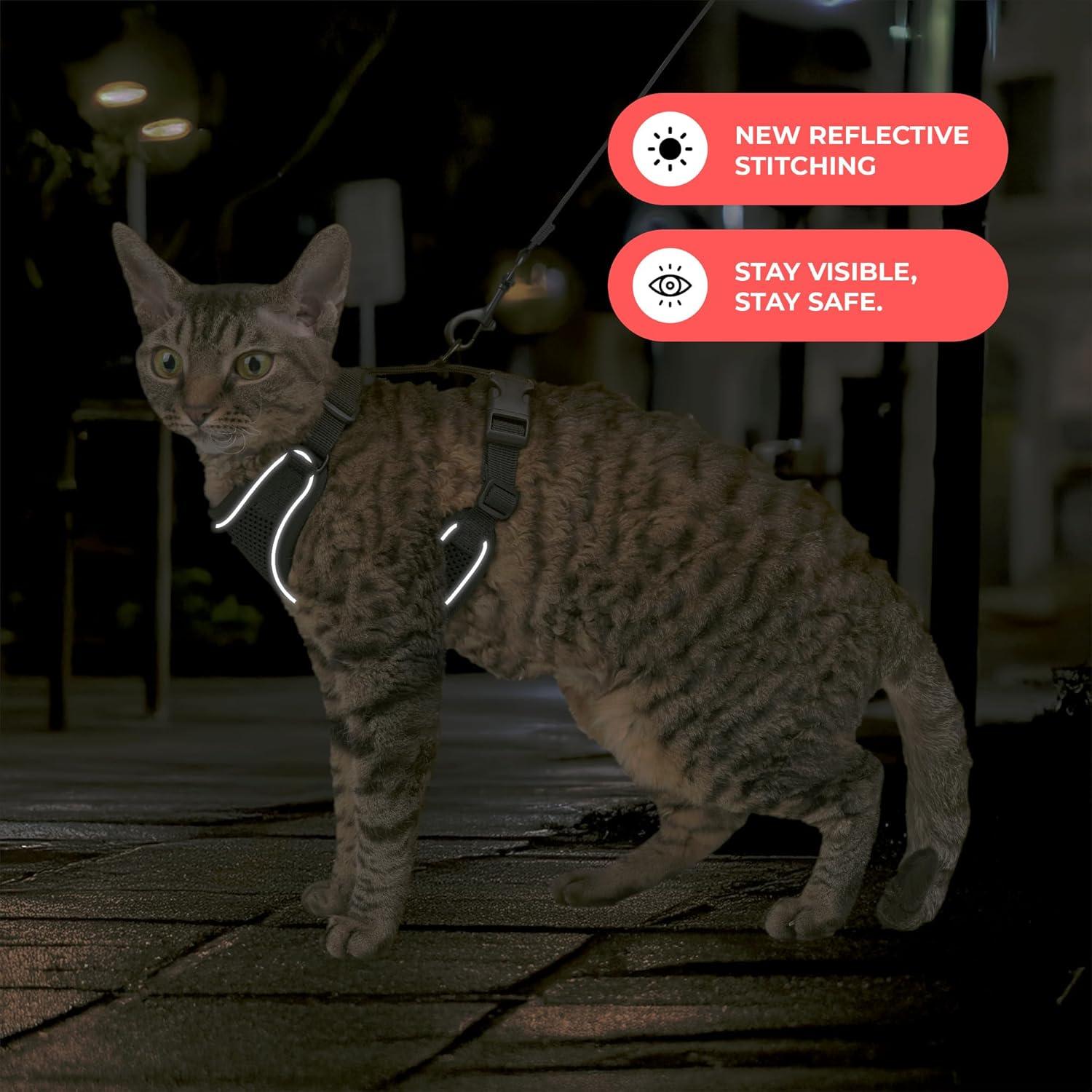 TAKE YOUR CAT ON WALKS WITH COMPLETE CONFIDENCE: Looking for a harness designed with cats in mind? One that contains your kitty without causing them any discomfort? The Voyager Flex harness strikes the perfect balance between fit and comfort! Being the master contortionists that cats are, it takes a cleverly designed harness to prevent them from wiggling out. We managed to design one that is practically escape-proof by combining a wider shape and a unique rounded top collar. So, now you'll have total peace of mind the next time you decide to take your cute kitty on a stroll. Here are more reasons to love this cat harness: Features a step-in design for hassle-free wear and removal. Multiple adjustment points give you the power to create a custom fit. The strong side buckle keeps your pet safely contained. Fitted with double D-rings for super-secure attachment of leashes. The padded mesh treats your pet to all-weather comfort. Go ahead, make walking your kitty an enjoyable reality with a harness designed just for cats!