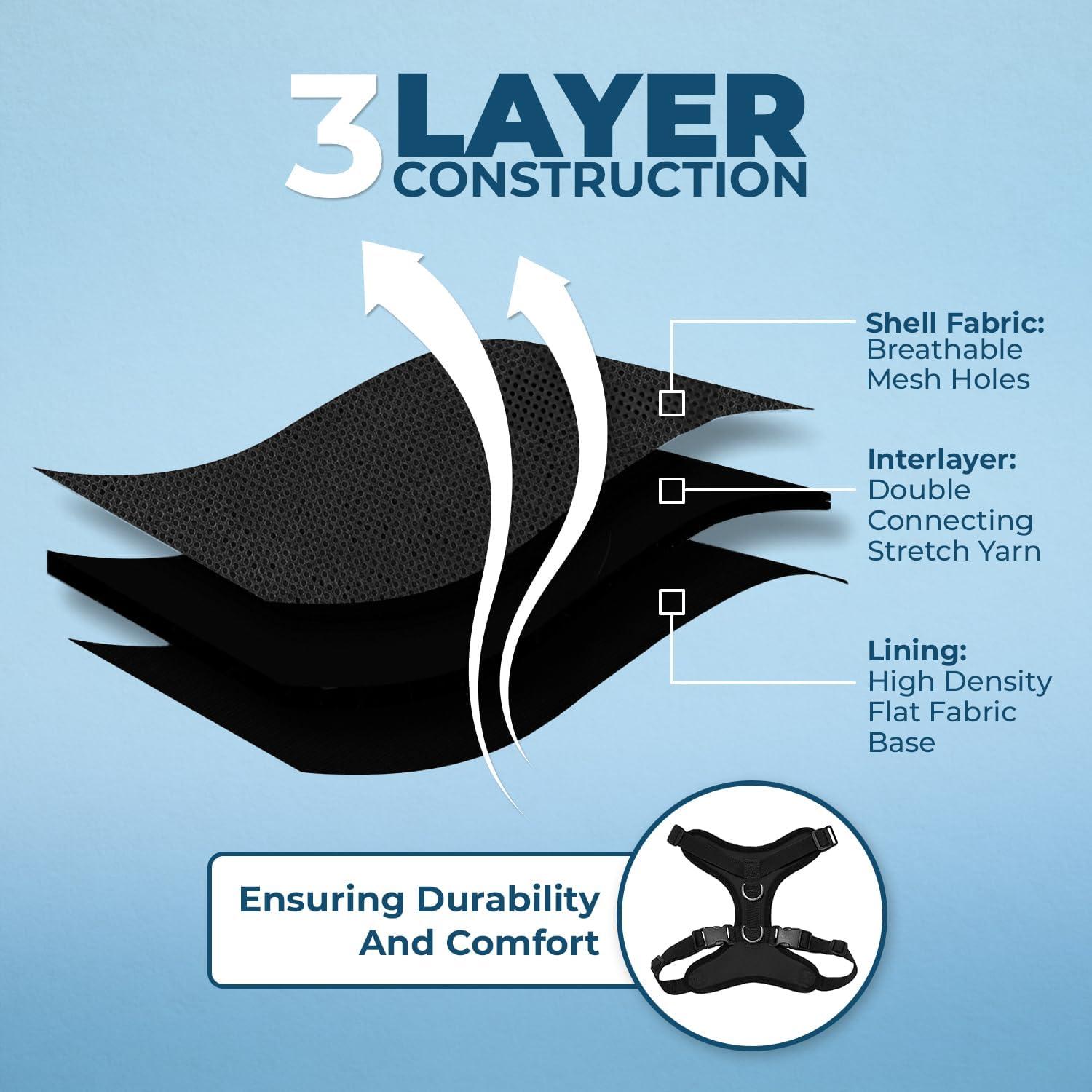 All Weather Air Mesh: Crafted from soft, breathable air mesh, this fully adjustable, lightweight, and escape-proof pet harness is perfect for walks all year round!