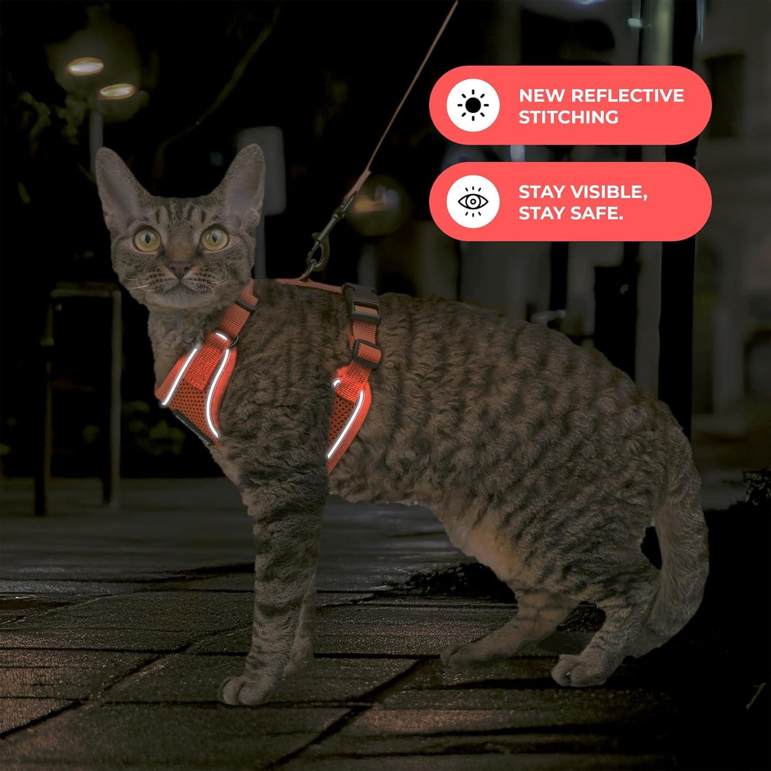TAKE YOUR CAT ON WALKS WITH COMPLETE CONFIDENCE: Looking for a harness designed with cats in mind? One that contains your kitty without causing them any discomfort? The Voyager Flex harness strikes the perfect balance between fit and comfort! Being the master contortionists that cats are, it takes a cleverly designed harness to prevent them from wiggling out. We managed to design one that is practically escape-proof by combining a wider shape and a unique rounded top collar. So, now you'll have total peace of mind the next time you decide to take your cute kitty on a stroll. Here are more reasons to love this cat harness: Features a step-in design for hassle-free wear and removal. Multiple adjustment points give you the power to create a custom fit. The strong side buckle keeps your pet safely contained. Fitted with double D-rings for super-secure attachment of leashes. The padded mesh treats your pet to all-weather comfort. Go ahead, make walking your kitty an enjoyable reality with a harness designed just for cats!