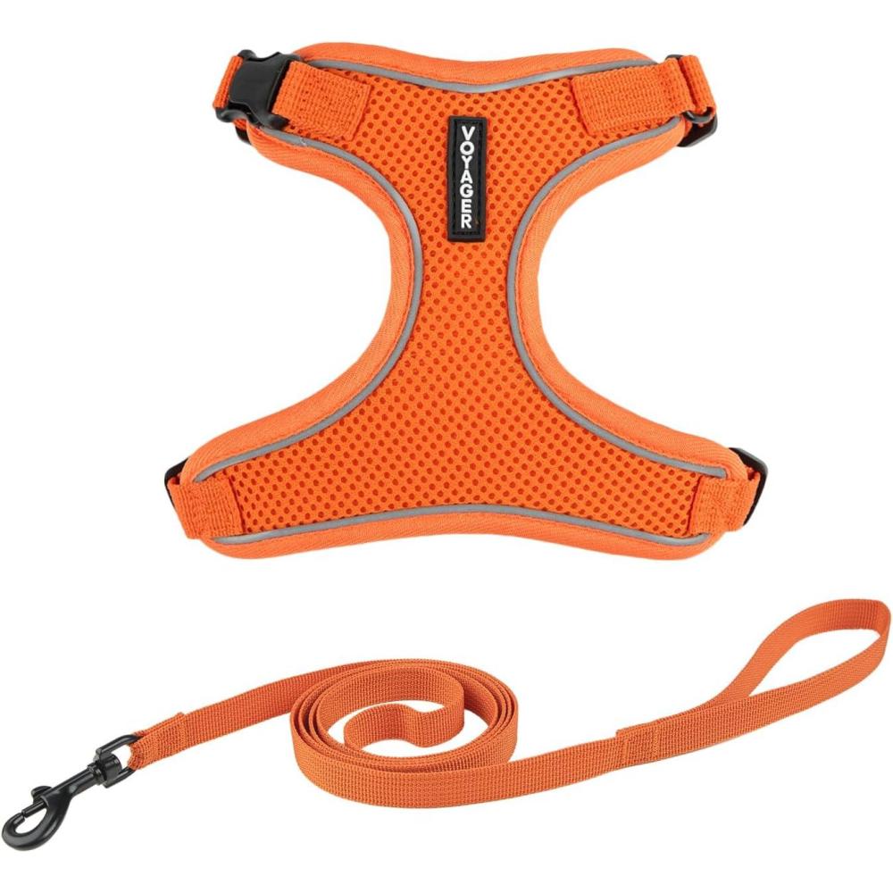 Voyager Step-in Lock Adjustable Cat Harness w. Cat Leash Combo Set with Neoprene Handle 5ft – Supports Small, Medium and Large Breed Cats by Best Pet Supplies – Orange, XS(Orange (327))